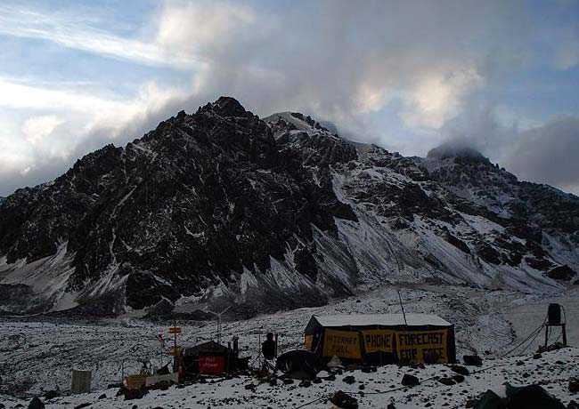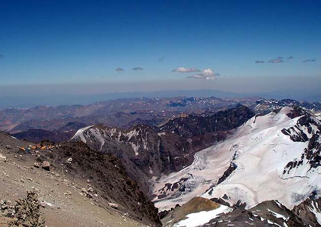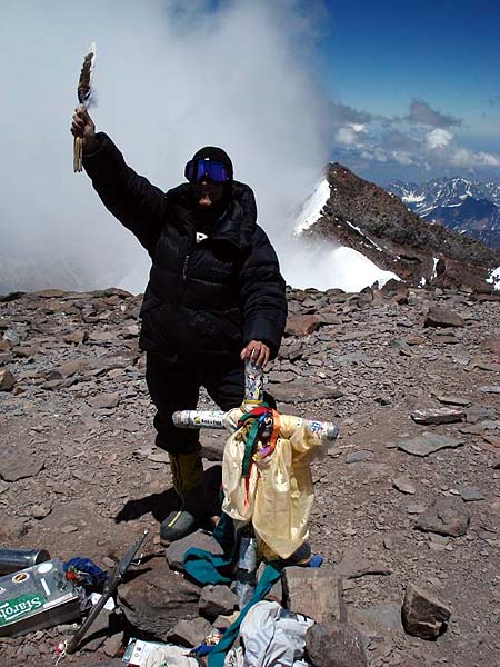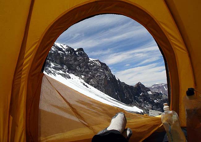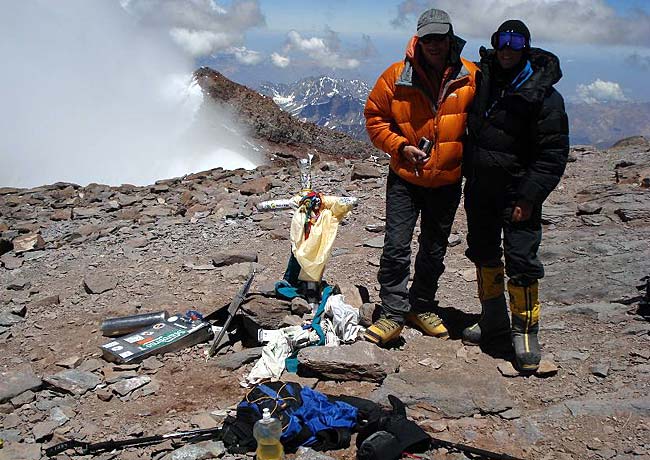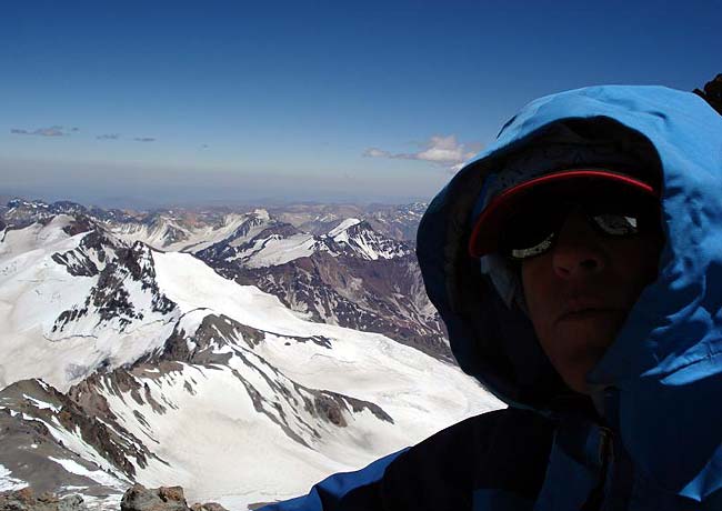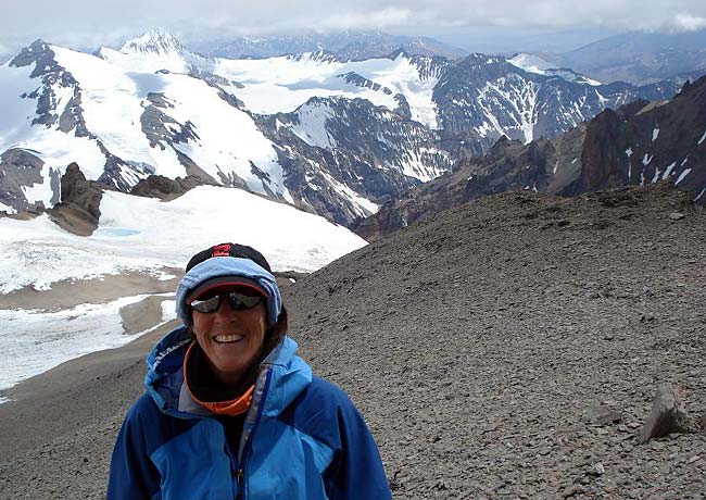 Nicki reports that their team summited Aconcagua today in perfect weather and were safely down in high camp at 20,000' where it's currently snowing. They had a tough approach to the mountain through the Vacas Valley where a critical bridge was out, so they had to do quite a bit of bush whacking and challenging river crossings.