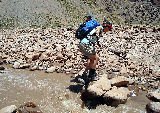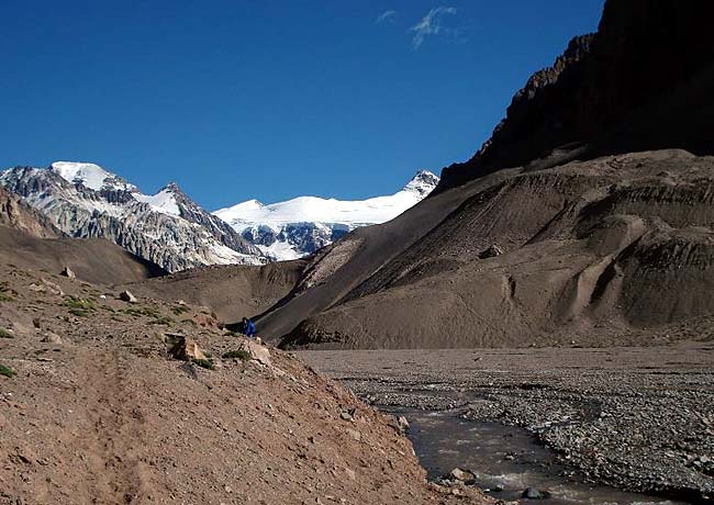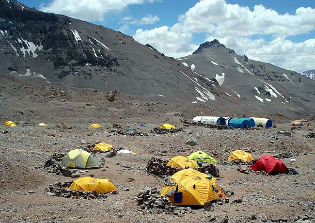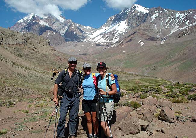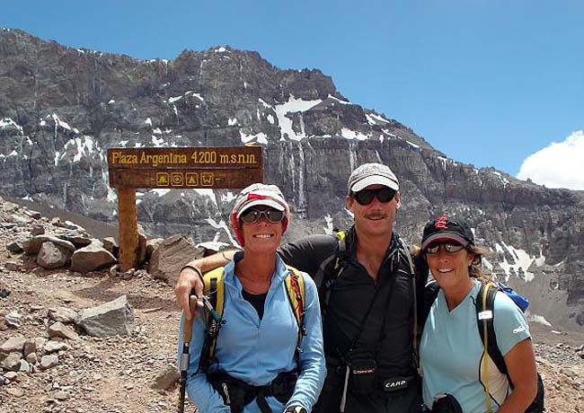 Well we had a small problem with four people missing luggage, ack, but it's been found so we are back on track for leaving Mendoza today and heading off to Los Penitentes to start our three day trek in tomorrow. We are going up the Vacas Valley, the False Polish Route if all goes well. We have two teams on this expedition. Scott, Laurie and I are one, then guide Chris has clients Steve from Oregon, Andy and Noel from Scotland. We all met yesterday and had a fantastic dinner with the best beef steaks in the world here in Mendoza. It's quite warm here, but we all feel fine so far. Can't wait to start the three day trek in to Plaza Argentina, then setting up 4 camps above that, then finally summit day. Until later!
